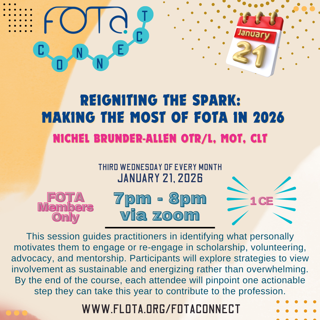 The Benefits of MembershipMembership fees support the FOTA Government Affairs Committee, which is active in advocating for occupational therapy practitioners and the clients we serve through: