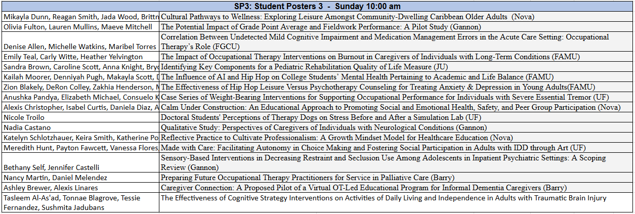 #41 The Impact of Occupational Therapy Interventions on Burnout in Caregivers of Individuals with Long-Term Conditions (FAMU) |